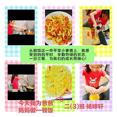 为充分展示抗疫期间学生居家劳动丰富多彩的生活样态,引导学生自主参与,提倡做力所能力的家务事,培养辛勤劳动、诚实劳动、创造性劳动情感。德育处面向一二年级学生开展“今天我当家”摄影作品征集活动,记录小朋友在家做家务(扫地、煮饭、做菜、制作小点心等)的场景或成果。一起来欣赏小朋友们的劳动身影吧!