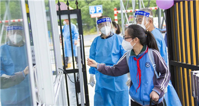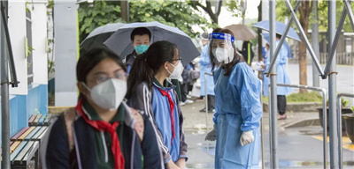 下午时分,老师们化身大白,为同学们提供核酸检测,常态化的核酸采样站设置在学校停车场。各班分时段按照规定的路线,有序排队、扫码、采样,整个流程分工明确,井然有序。