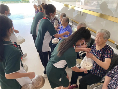 下午3点,同学们怀着诚挚之心,带着慰问品来到敬老院,老人们热情欢迎同学们的到来。同学们的到来使敬老院充满了笑声,同学们分发重阳糕,陪老人聊天。同学们和老人自由交谈的同时,认真倾听老人们讲述着自己的个人经历,了解今天的幸福生活来之不易。