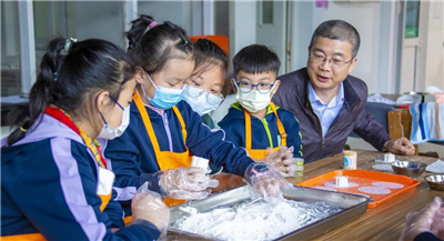 10月9日下午,荣获2022年度“尚读”荣誉学生称号、第十七届大队委员和中队长代表,齐聚学校教师餐厅,参与第一届桂花节之“品花味”活动,学习制作民俗制品:传统桂花糕。学校党支部书记、校长周春艳,德育分管领导李杰,也走进教师餐厅,走到学生中间,一起参与本次活动。