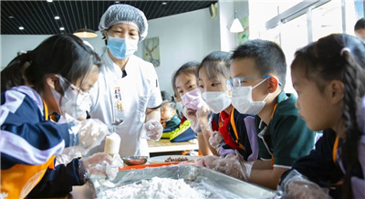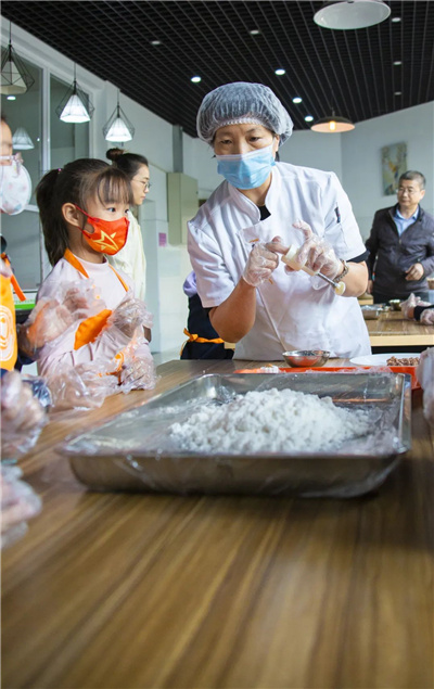同学们用不同的花片,制作出了不同花纹的桂花糕。看似简单的制作步骤,其实也需要倾注细心、耐心,把握好力度、速度等制作要点,如此才能呈现出一个精致的桂花糕。不过,同学们初次尝试,可谓是首战告捷、信心倍增,接下来就是耐心等待!