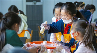 大家怀着兴奋、好奇的心情,端坐在餐桌前认真聆听胡晓燕老师的专业讲解,在学习了简易的制作技巧后,同学们跃跃欲试,迫不及待地想要一展刚刚习得的制作技艺。