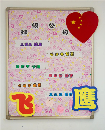 班级文化特色:只要我们勇敢往前闯,经历过风雨,就能闯出一片属于自己的天地,这五颜六色的彩虹就像是我们丰富多彩、美好的生活。