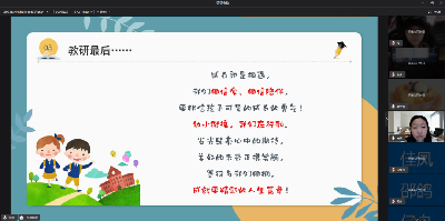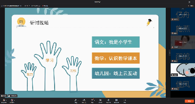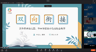 5月31日,华亭学校和天华艺术幼儿园开展“聚焦大班幼儿学习品质培养,助力幼小双向衔接‘佳’速度”为聚焦点的教研活动。华亭学校一二年级组老师在王东薪副校长的带领下,与金洁园长带队的天华艺术幼儿园的大班组教师,云端相聚,共研幼小衔接话题。通过交流与研讨,老师们深刻体会到,幼儿园的教育与小学的教育是“你中有我、我中有你”的互为连带不可分割的。相信通过幼小衔接系列活动,幼儿园的小朋友和家长能更加了解小学生活,为进入小学做好了充分的准备,老师们也通过交流做好科学的衔接准备。