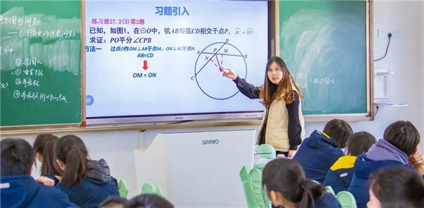 数学教研组长易美容老师执教《应用基本图形解题—与圆有关的综合问题(1)》一课。研讨时对目前九年级学生的数学学习情况进行介绍,并汇报九年级数学的复习计划。陈佳林认为,本节课教学设计实用合理,紧扣重难点,注重教考一致,注重激发学生的深层思考,引导学生自己说出不同的解法,学生参与课堂的积极性高。