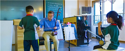 孩子们正沉浸在悠扬悦耳的琴声中