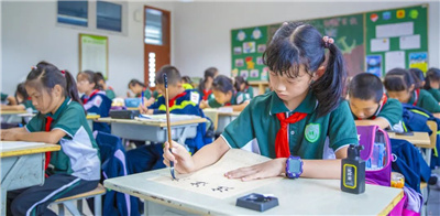 孩子们正一丝不苟地练习书法